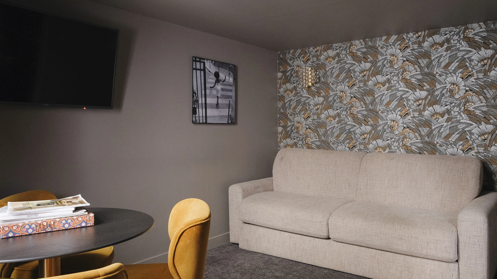 Experience the charm of this elegant duplex, designed for both space and intimacy, located on the ground floor of the hotel.